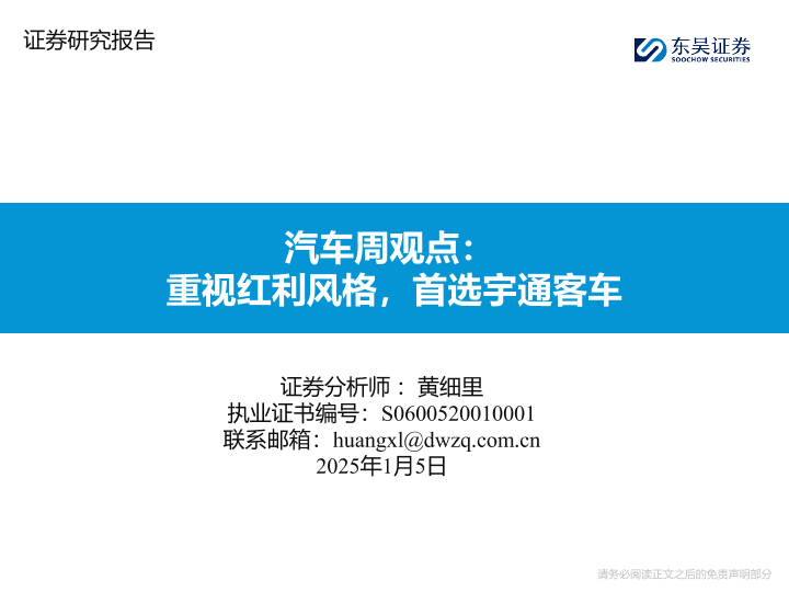 【东吴证券】【20250105】汽车周观点:重视红利风格,首选宇通客车-34页