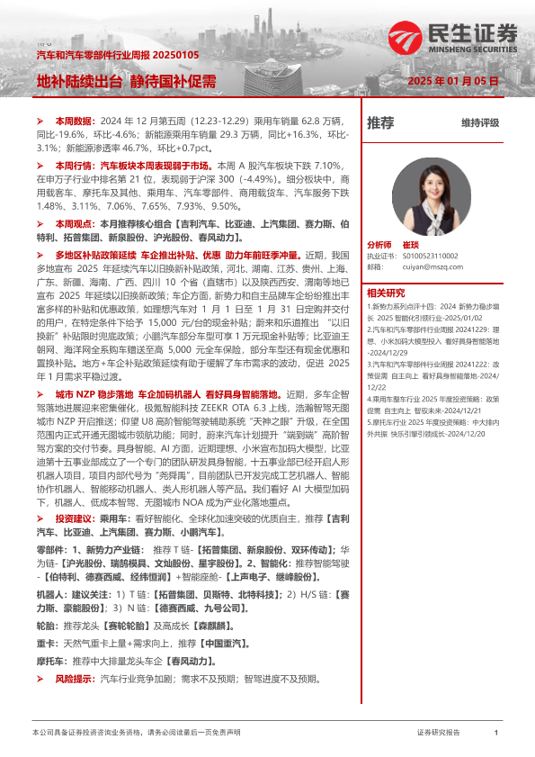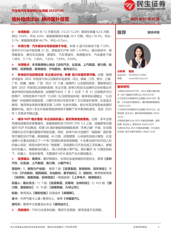 【民生证券】【20250105】汽车和汽车零部件行业周报:地补陆续出台 静待国补促需-37页