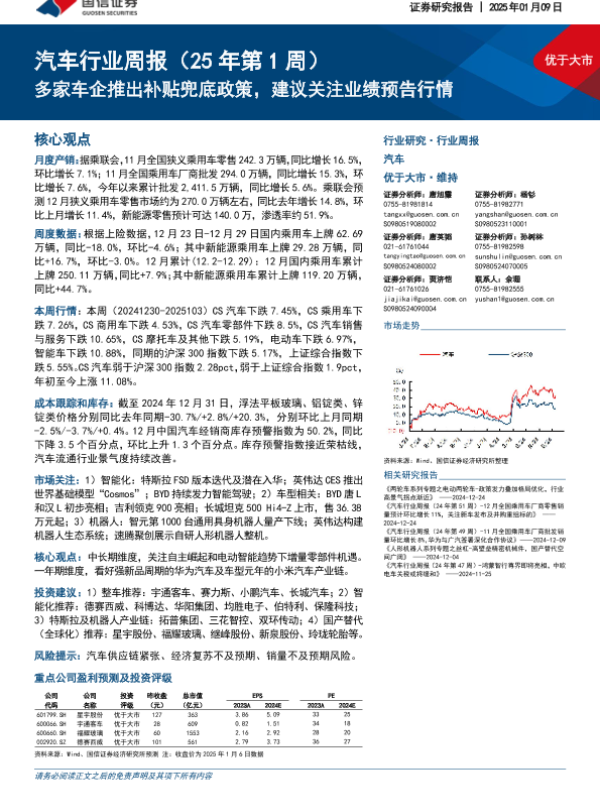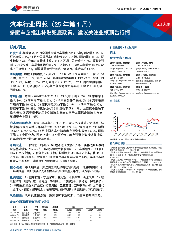 【国信证券】【20250109】20250109-国信证券-汽车行业周报(25年第1周):多家车企推出补贴兜底政策,建议关注业绩预告行情-31页