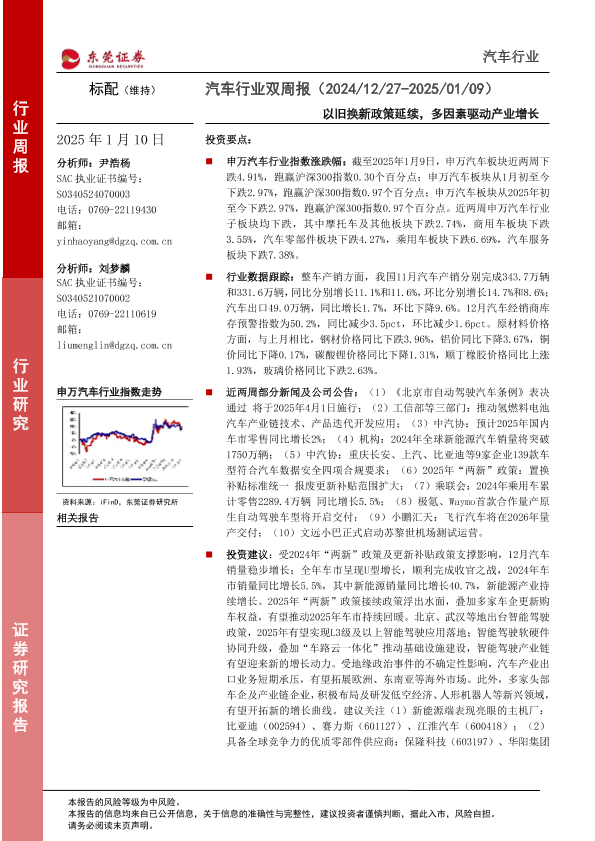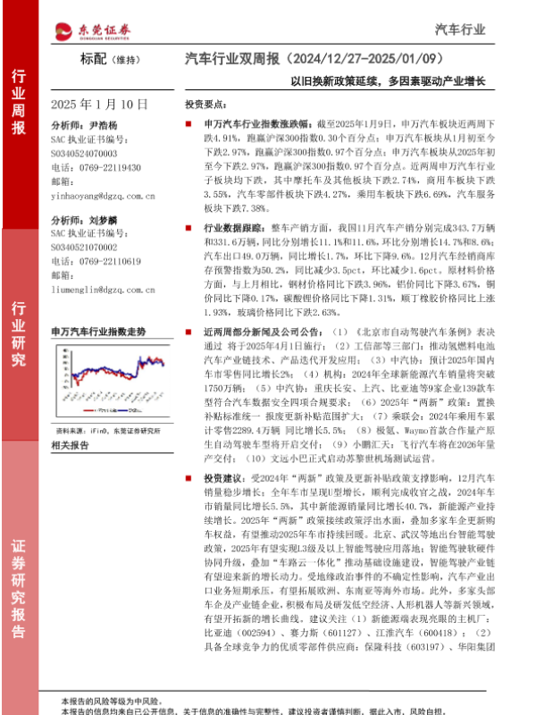【东莞证券】【20250110】汽车行业双周报:以旧换新政策延续,多因素驱动产业增长-15页