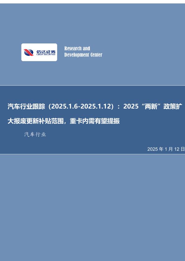 【信达证券】【20250112】2025“两新”政策扩大报废更新补贴范围,重卡内需有望提振-11页