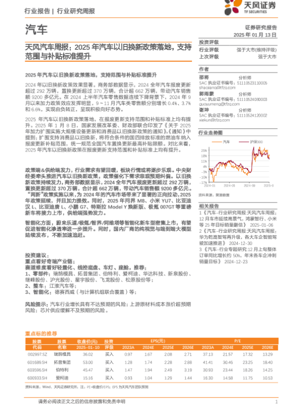【天风证券】【20250113】2025年汽车以旧换新政策落地,支持范围与补贴标准提升-12页