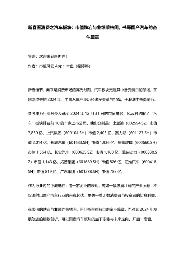【市值风云】【20250115】新春看消费之汽车板块:市值跌宕与业绩荣枯间,书写国产汽车的奋斗篇章-38页