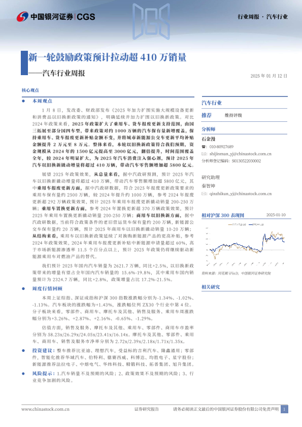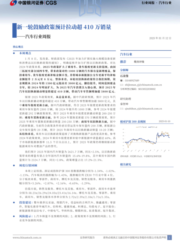 【银河证券】【20250112】20250112-中国银河-汽车行业周报:新一轮鼓励政策预计拉动超410万销量-17页