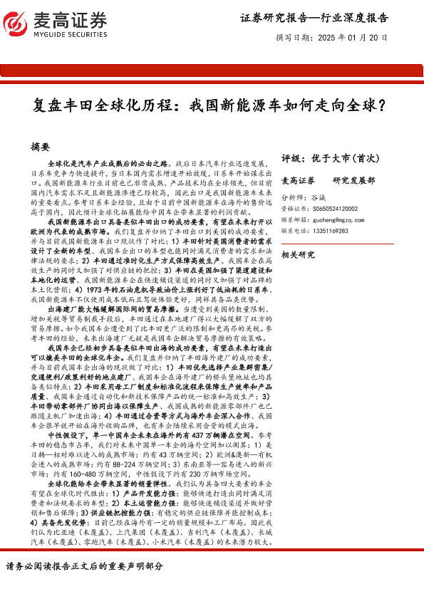【麦高证券】【20250120】复盘丰田全球化历程:我国新能源车如何走向全球?-37页