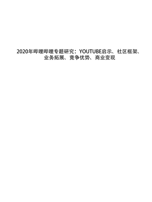 【广发证券】【20200414】2020年哔哩哔哩专题研究:YOUTUBE启示、社区框架、业务拓展、竞争优势、商业变现-59页