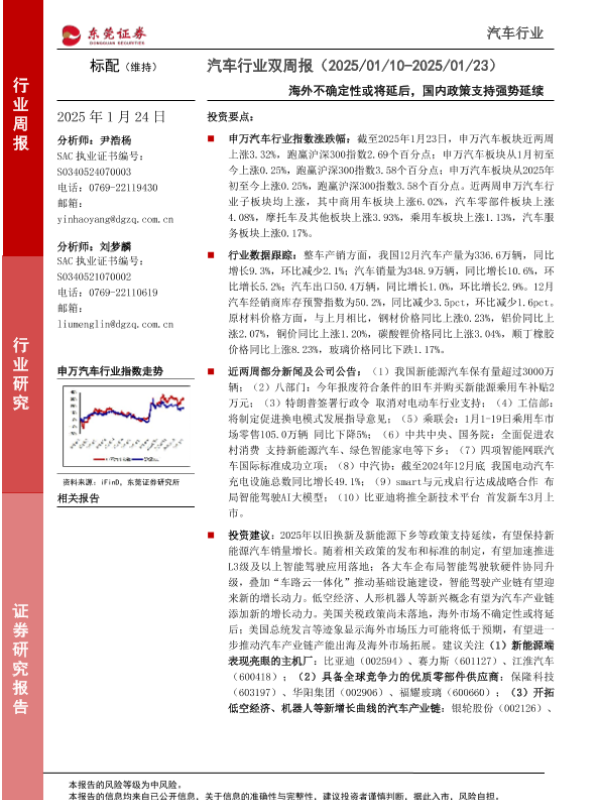 【东莞证券】【20250124】汽车行业双周报:海外不确定性或将延后,国内政策支持强势延续-15页