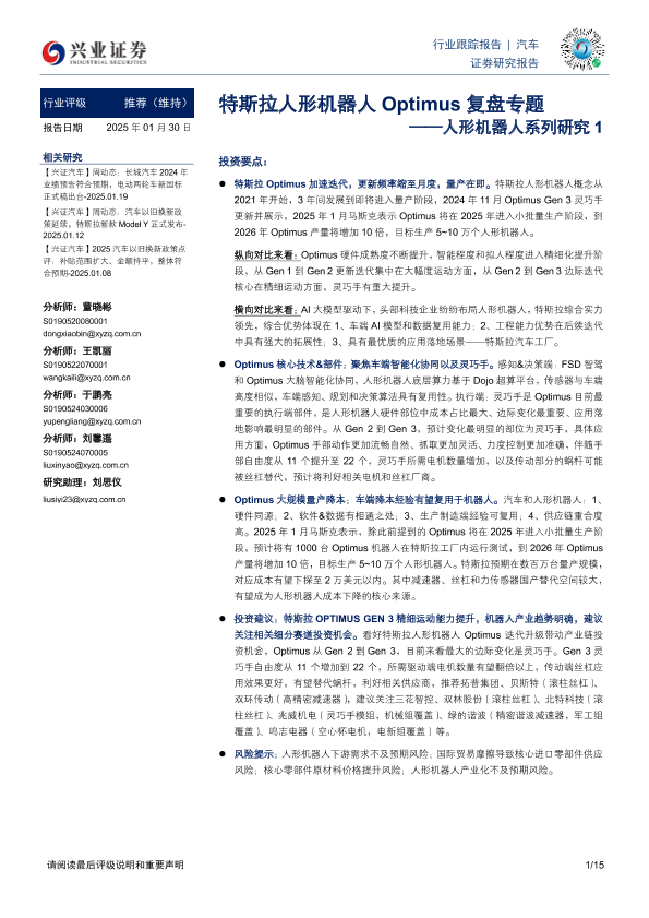 【兴业证券】【20250130】20250130-兴业证券-人形机器人系列研究1:特斯拉人形机器人Optimus复盘专题-15页