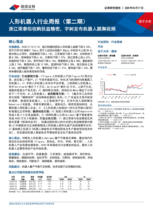 【国信证券】【20250217】人形机器人行业周报(第二期):浙江荣泰拟收购狄兹精密,宇树发布机器人跳舞视频-11页