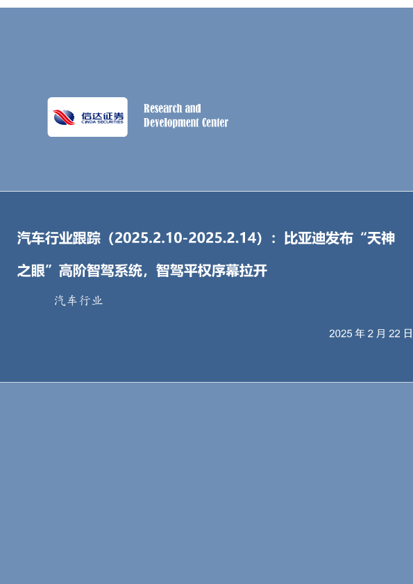 【信达证券】【20250222】汽车行业跟踪:比亚迪发布“天神之眼”高阶智驾系统,智驾平权序幕拉开-12页
