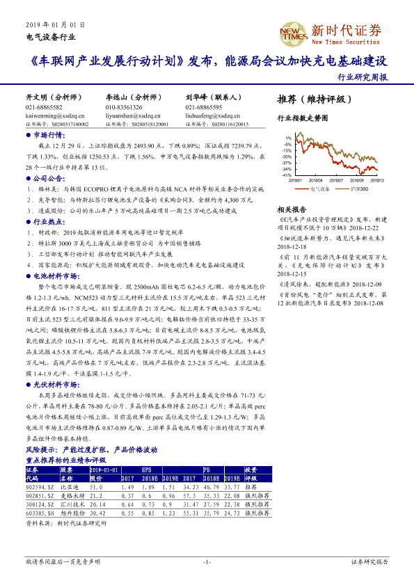 【新时代证券】【20190101】电气设备行业研究周报:《车联网产业发展行动计划》发布,能源局会议加快充电基础建设-15页