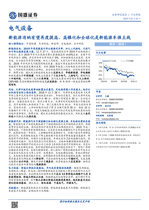 【国盛证券】【20190101】20190101-国盛证券-电气设备行业周报:新能源消纳有望再度提高,高镍化和全球化是新能源车强主线-24页