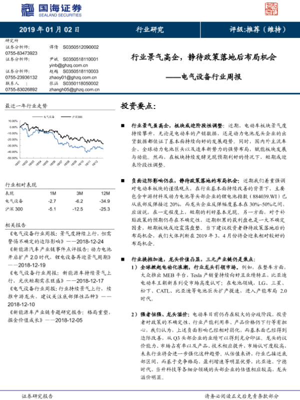 【国海证券】【20190102】电气设备行业周报:行业景气高企,静待政策落地后布局机会-30页