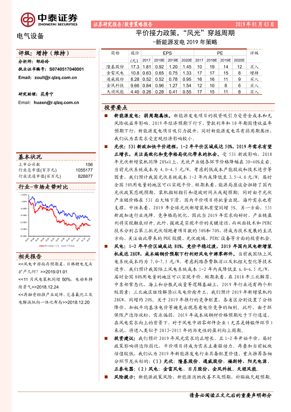 【中泰证券】【20190103】新能源发电2019年策略:平价接力政策,“风光”穿越周期-35页