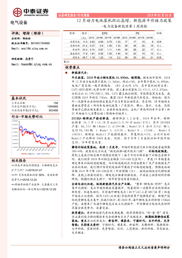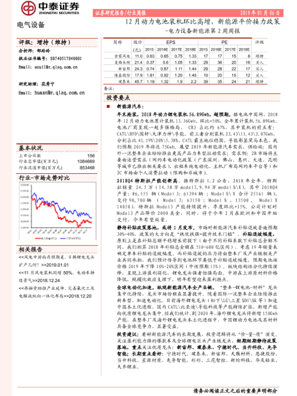 【中泰证券】【20190106】电力设备新能源第2周周报:12月动力电池装机环比高增,新能源平价接力政策-26页