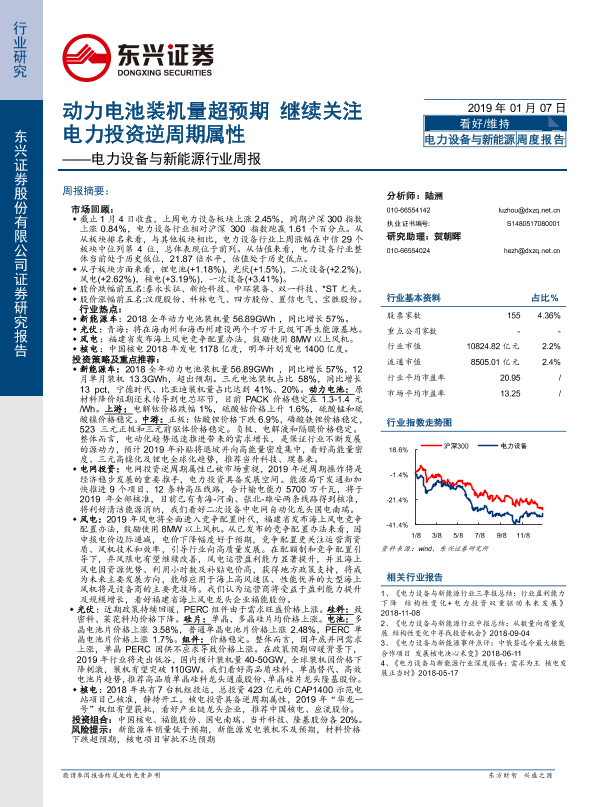 【东兴证券】【20190107】电力设备与新能源行业周报:动力电池装机量超预期 继续关注电力投资逆周期属性-22页