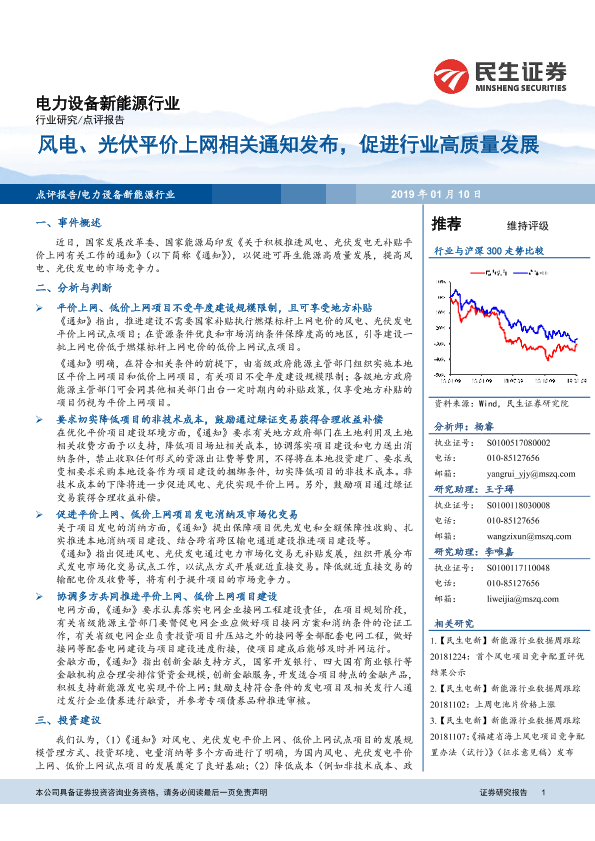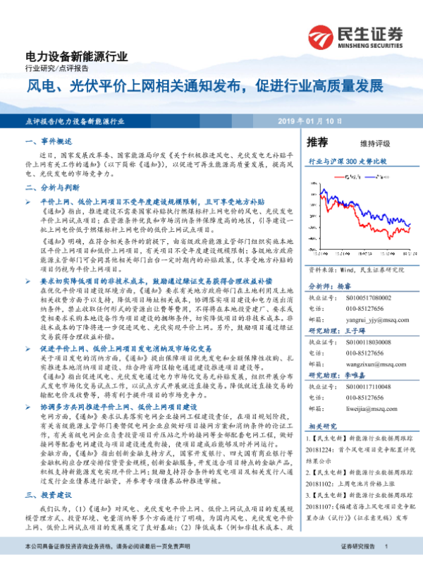 【民生证券】【20190110】风电、光伏平价上网相关通知发布,促进行业高质量发展-4页