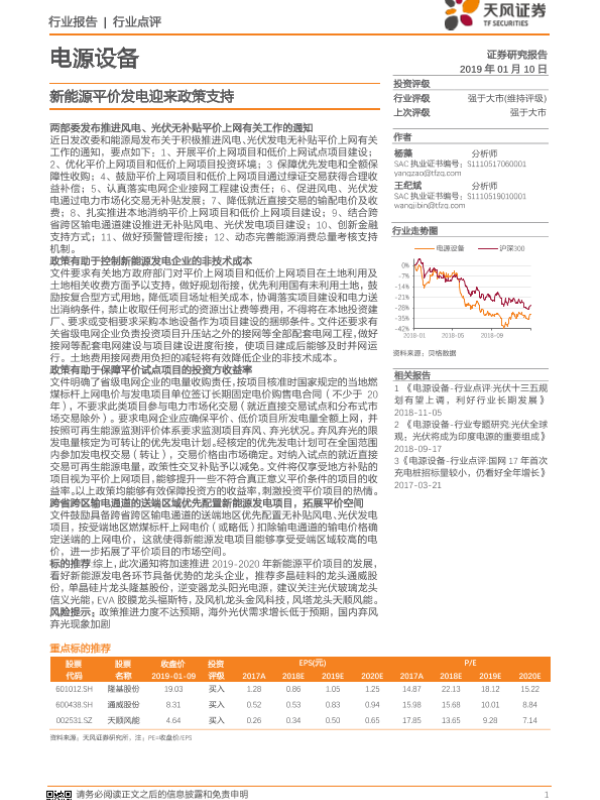 【天风证券】【20190110】电源设备行业点评:新能源平价发电迎来政策支持-2页