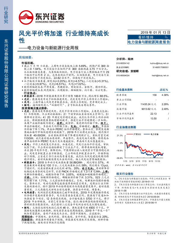 【东兴证券】【20190113】电力设备与新能源行业周报:风光平价将加速 行业维持高成长性-22页