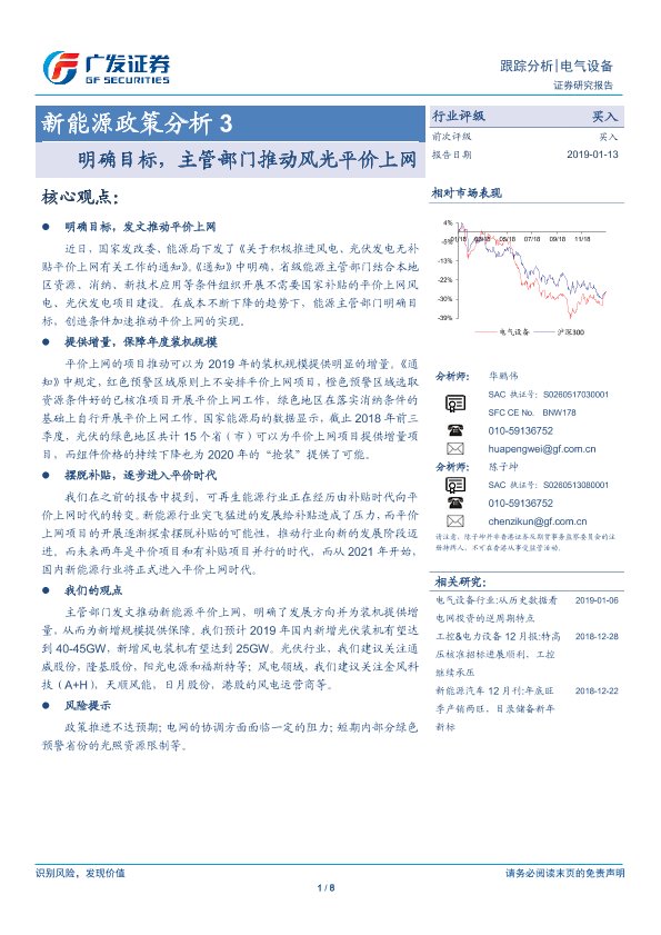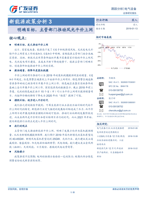 【广发证券】【20190113】新能源政策分析3:明确目标,主管部门推动风光平价上网-8页