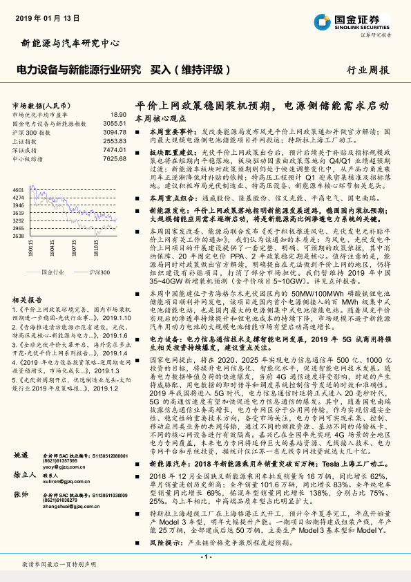 【国金证券】【20190113】电力设备与新能源行业研究周报:平价上网政策稳固装机预期,电源侧储能需求启动-4页