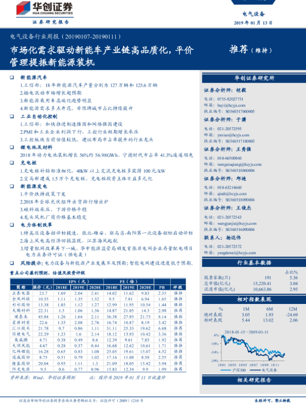【华创证券】【20190113】电气设备行业周报:市场化需求驱动新能车产业链高品质化,平价管理提振新能源装机-25页