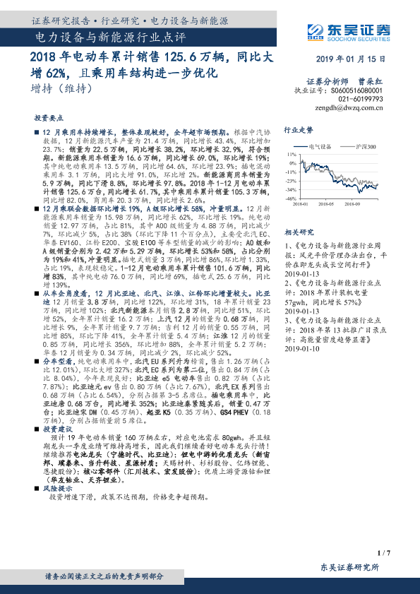 【东吴证券】【20190115】电力设备与新能源行业点评:2018年电动车累计销售125.6万辆,同比大增62%,且乘用车结构进一步优化-7页