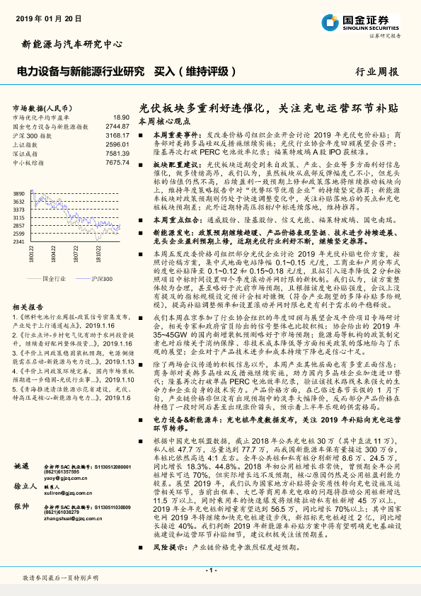 【国金证券】【20190120】电力设备与新能源行业研究周报:光伏板块多重利好连催化,关注充电运营环节补贴-4页