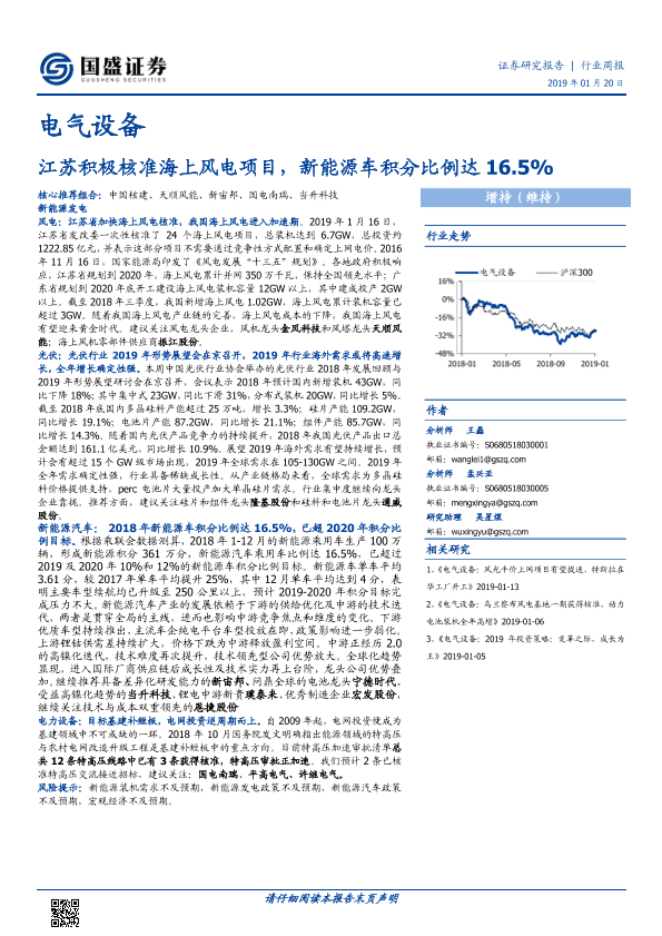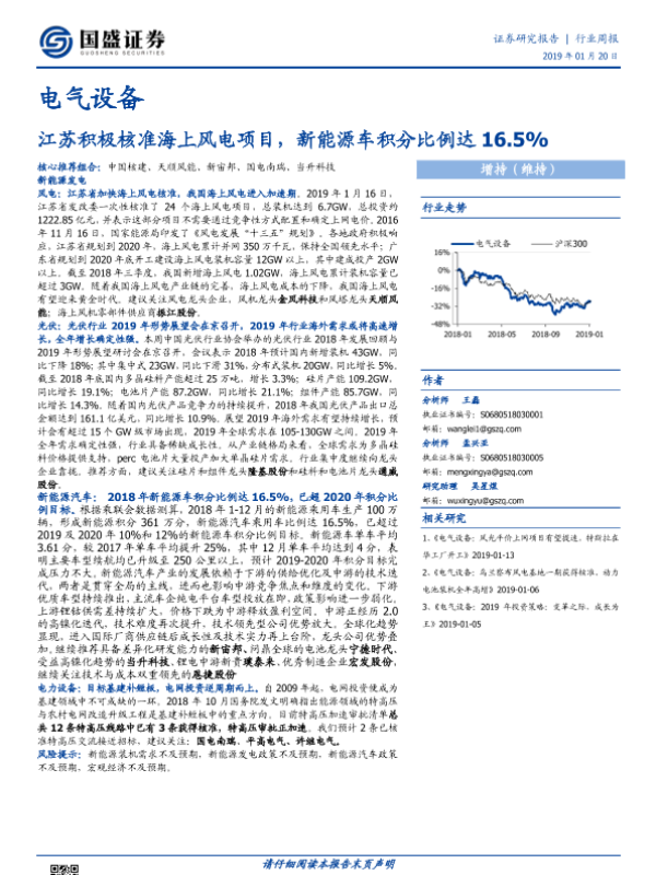 【国盛证券】【20190120】电气设备行业周报:江苏积极核准海上风电项目,新能源车积分比例达16.5%-19页