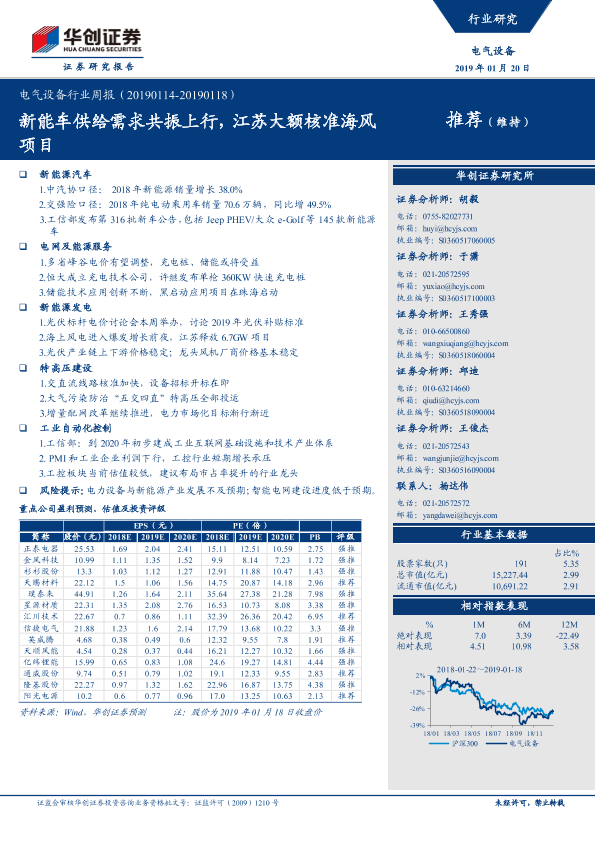 【华创证券】【20190120】20190120-华创证券-电气设备行业周报:新能车供给需求共振上行,江苏大额核准海风项目-26页