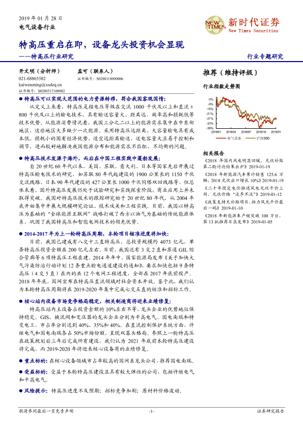 【新时代证券】【20190128】特高压重启在即,设备龙头投资机会显现-37页