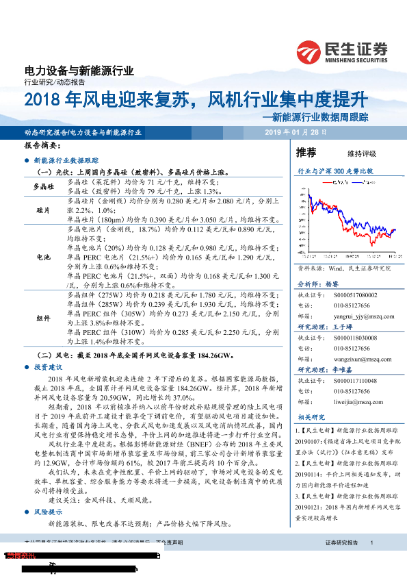 【民生证券】【20190128】20190128-民生证券-新能源行业数据周跟踪:2018年风电迎来复苏,风机行业集中度提升-10页
