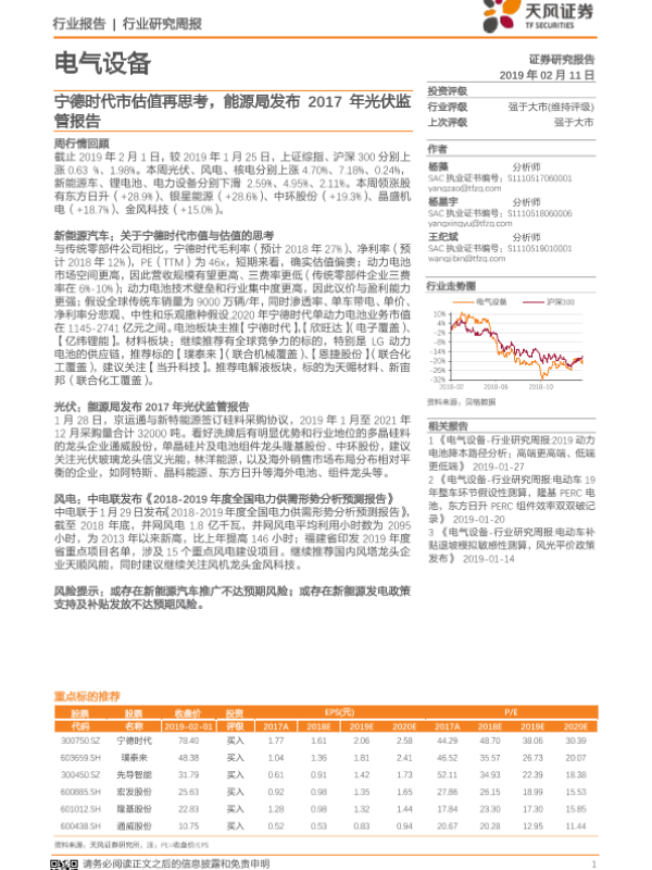 【天风证券】【20190211】20190211-天风证券-电气设备行业研究周报:宁德时代市估值再思考,能源局发布2017年光伏监管报告-19页