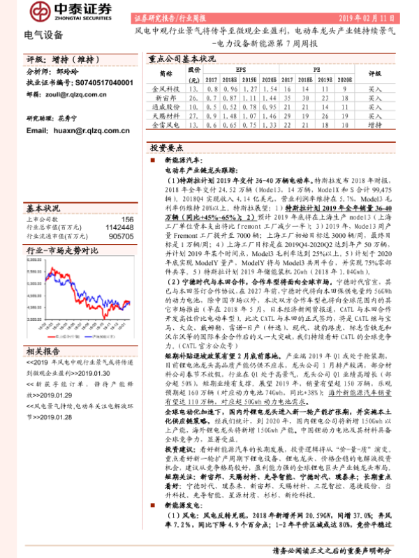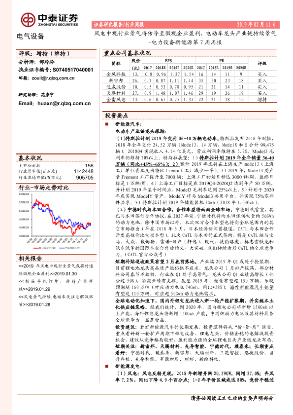 【中泰证券】【20190211】电力设备新能源第7周周报:风电中观行业景气将传导至微观企业盈利,电动车龙头产业链持续景气-33页