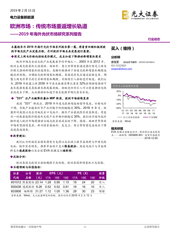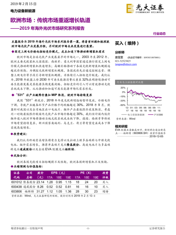 【光大证券】【20190215】2019年海外光伏市场研究系列报告-欧洲市场:传统市场重返增长轨道-20页