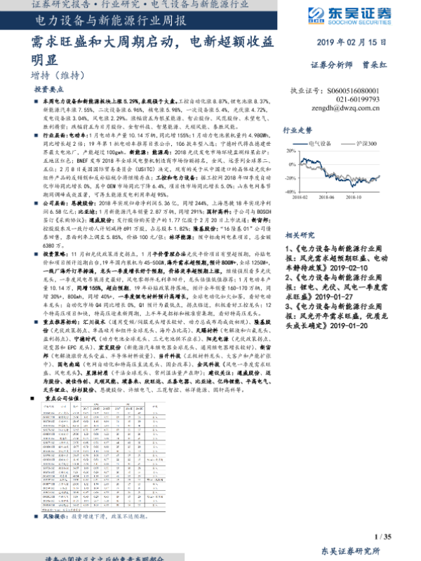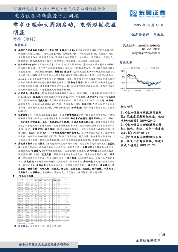 【东吴证券】【20190215】电力设备与新能源行业周报:需求旺盛和大周期启动,电新超额收益明显-35页