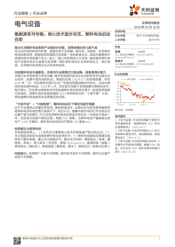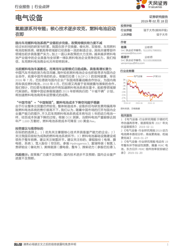 【天风证券】【20190218】电气设备:氢能源系列专题:核心技术逐步攻克,燃料电池启动在即-7页