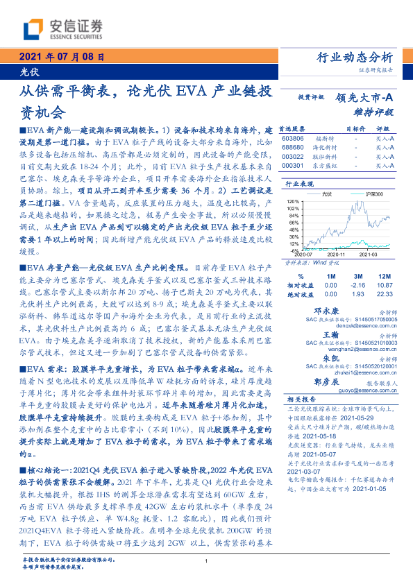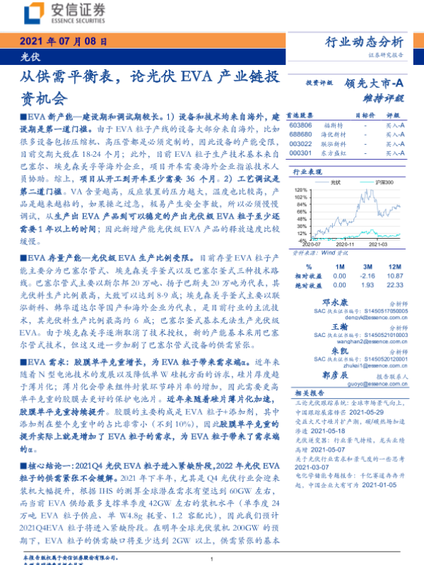 【安信证券】【20210708】光伏行业:从供需平衡表,论光伏EVA产业链投资机会-10页