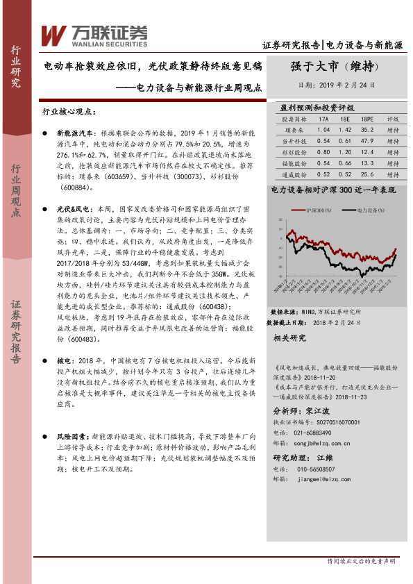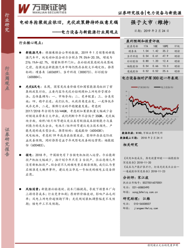 【万联证券】【20190224】电力设备与新能源行业周观点:电动车抢装效应依旧,光伏政策静待终版意见稿-13页