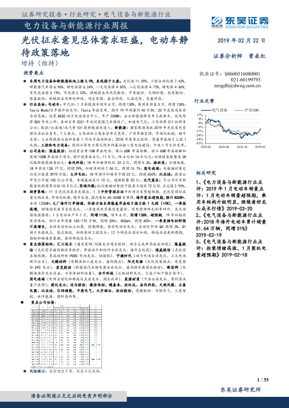 【东吴证券】【20190222】电力设备与新能源行业周报:光伏征求意见总体需求旺盛,电动车静待政策落地-35页