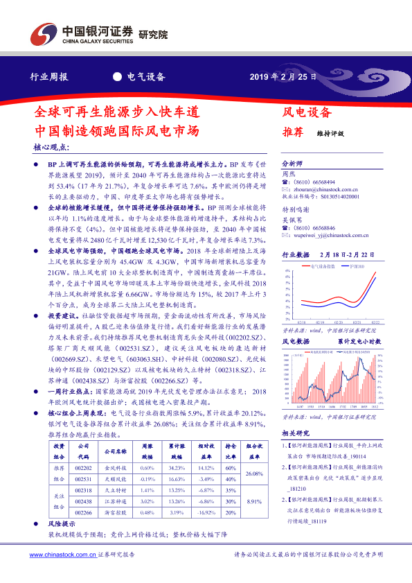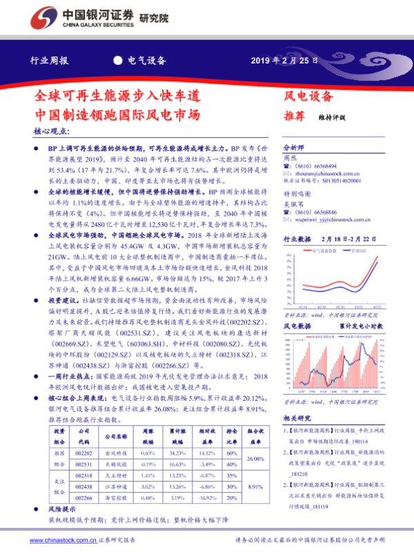 【银河证券】【20190225】中国银河-电气设备行业周报:全球可再生能源步入快车道 中国制造领跑国际风电市场-26页