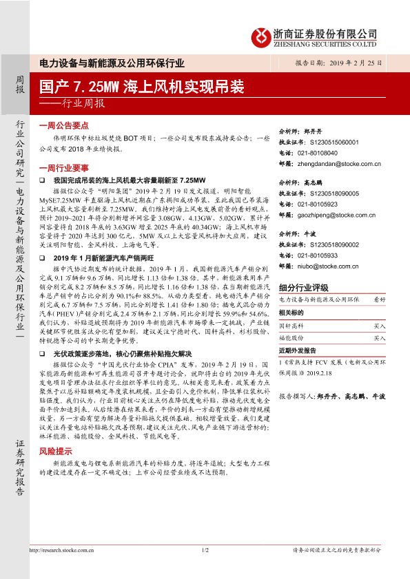 【浙商证券】【20190225】电力设备与新能源及公用环保行业周报:国产7.25MW海上风机实现吊装-2页