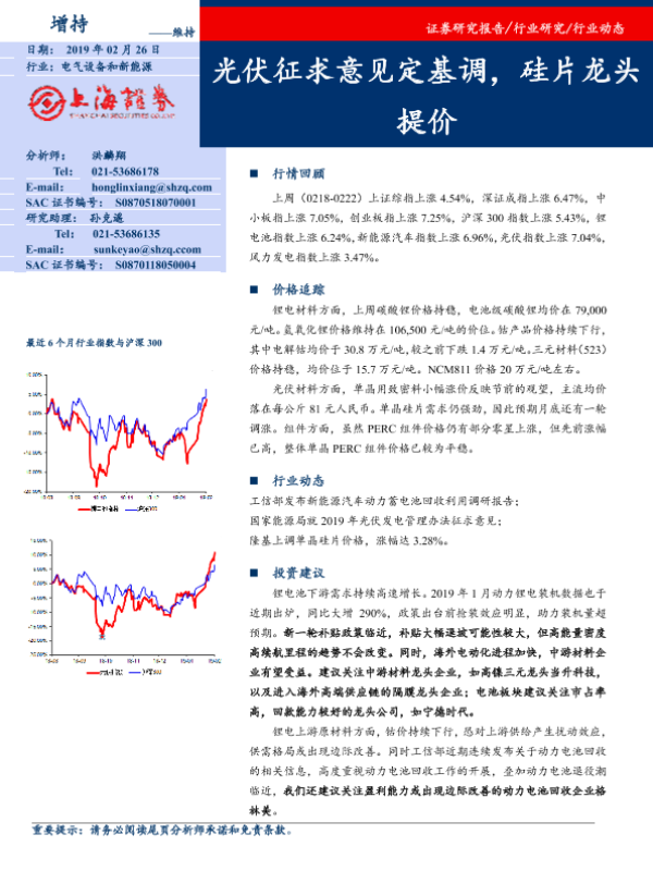 【上海证券】【20190226】电气设备和新能源:光伏征求意见定基调,硅片龙头提价-16页