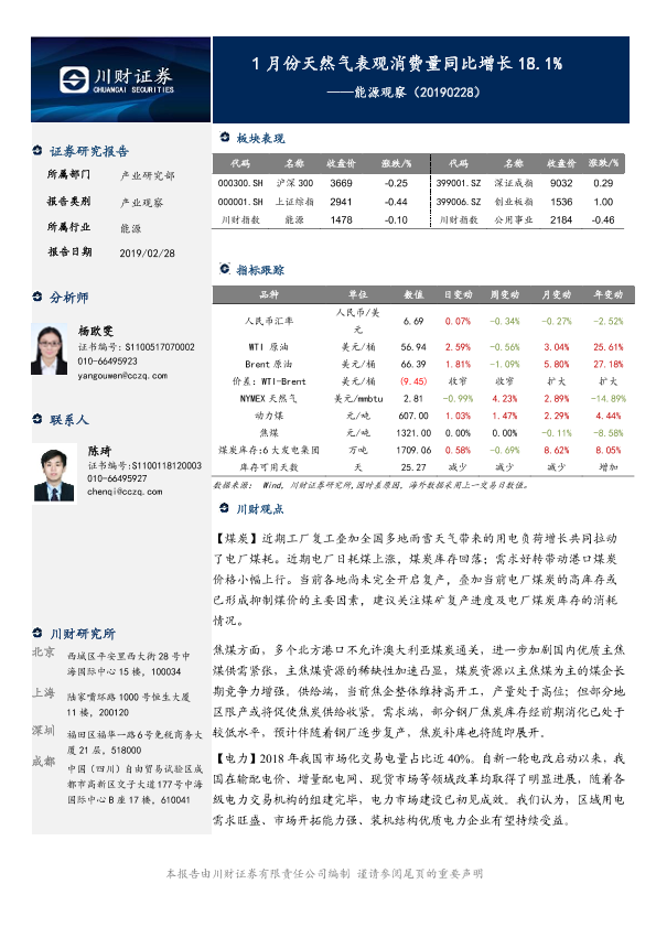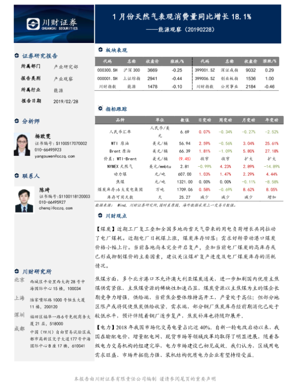 【川财证券】【20190228】能源观察:1月份天然气表观消费量同比增长18.1%-4页