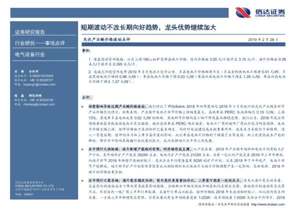 【信达证券】【20190228】光伏产业链价格波动点评:短期波动不改长期向好趋势,龙头优势继续加大-4页