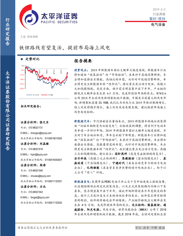 【太平洋证券】【20190302】电气设备行业周报:铁锂路线有望复活,提前布局海上风电-20页