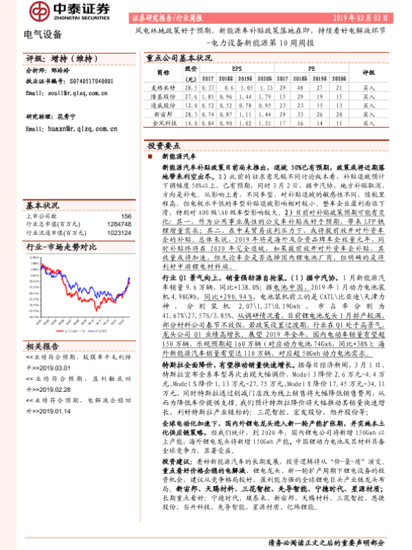 【中泰证券】【20190303】电力设备新能源第10周周报:风电林地政策好于预期,新能源车补贴政策落地在即,持续看好电解液环节-33页