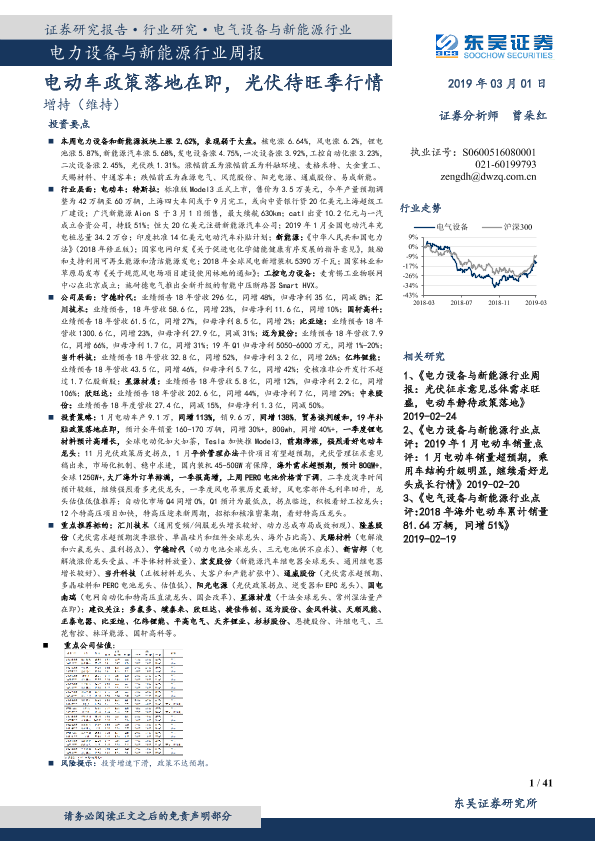 【东吴证券】【20190301】电力设备与新能源行业周报:电动车政策落地在即,光伏待旺季行情-41页