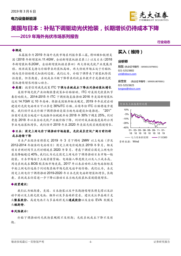 【光大证券】【20190306】2019年海外光伏市场系列报告:美国与日本:补贴下调驱动光伏抢装,长期增长仍待成本下降-10页