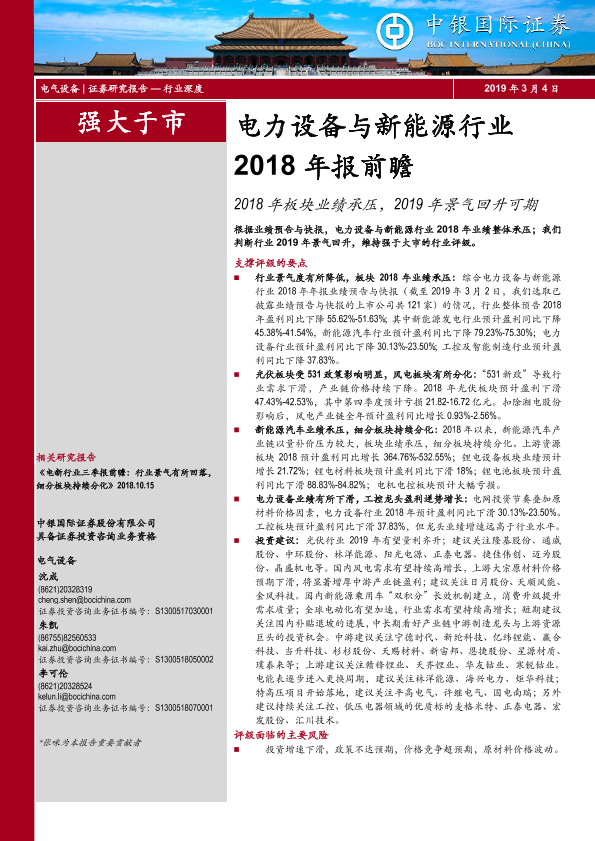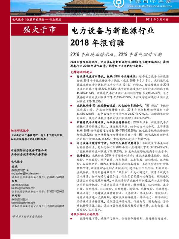 【中银证券】【20190304】电力设备与新能源行业2018年报前瞻:2018年板块业绩承压,2019年景气回升可期-21页